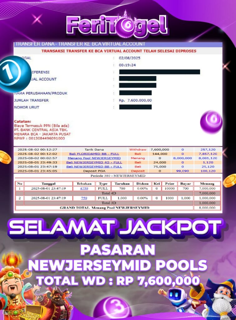 Apakah Kamu masih ragu buat bermain di pasaran NEWJERSEY MID? Jangan takut! Kami muncul dengan fakta nyata kemenangan para pemain setia Feritogel. Telah banyak member yang sukses bawa kembali hadiah besar dari pasaran ini, serta saat ini giliran Kamu mencapai keberuntungan!