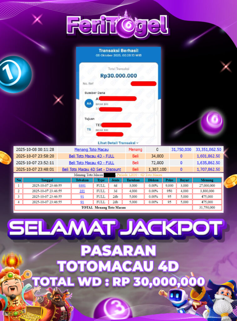 Apakah Kamu masih ragu buat bermain di pasaran TOTO MACAU 4D? Jangan takut! Kami muncul dengan fakta nyata kemenangan para pemain setia Feritogel. Telah banyak member yang sukses bawa kembali hadiah besar dari pasaran ini, serta saat ini giliran Kamu mencapai keberuntungan!
